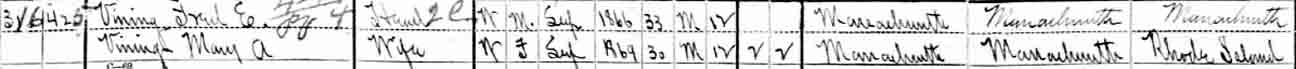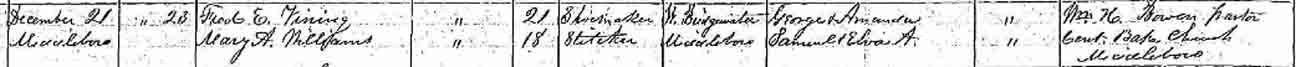Marriage record for Fred E. Vining and Mary A. Williams, Middleborough, Plymouth County, Massachusetts: