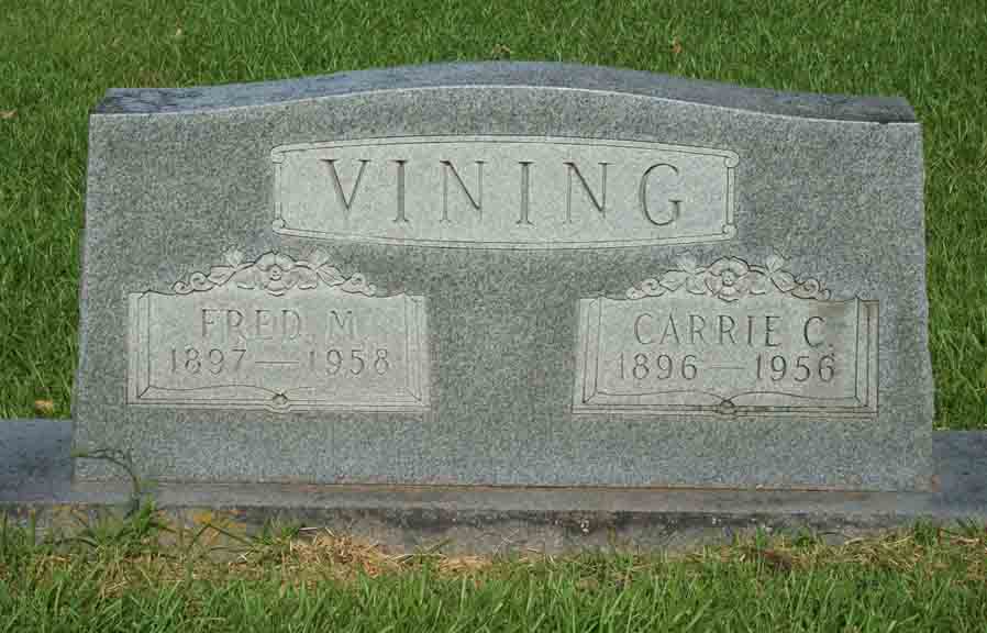 Headstone for Fred M. Vining and Carrie C. (Bono) Vining, in Bellwood Cemetery Annex, Pine Bluff, Jefferson County, Arkansas (from Find A Grave):