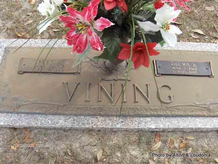 Headstone for Fred N. Vining and Delma (Box) Vining, Forest Lawn Memorial Gardens, Lake City, Columbia County, Florida (from Find A Grave):