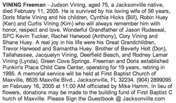 ← Back to Freeman Judson Vining Jr. - Doris Marie [...]