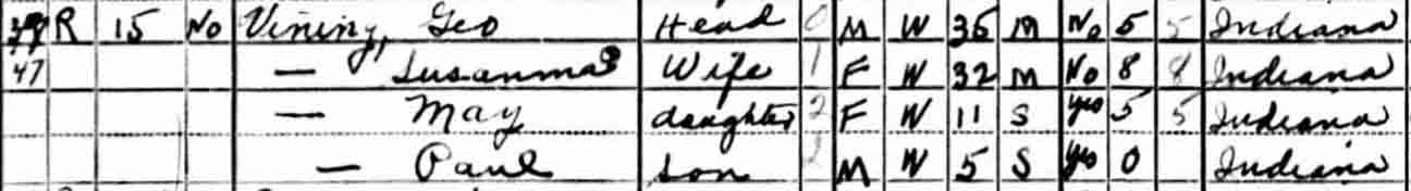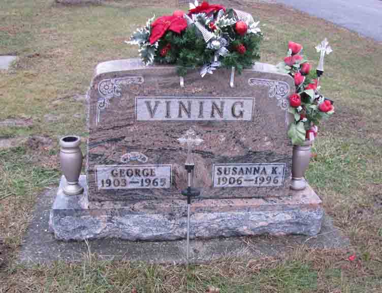 Headstone for George Vining and Susanna K. ([…]) Vining, in IOOF Cemetery, New Haven, Allen County, Indiana (from Find A Grave):