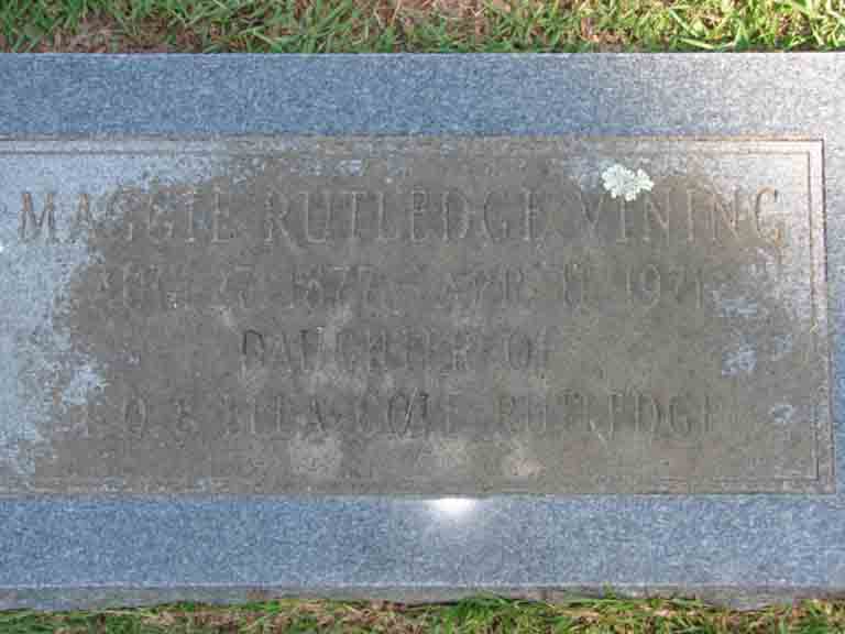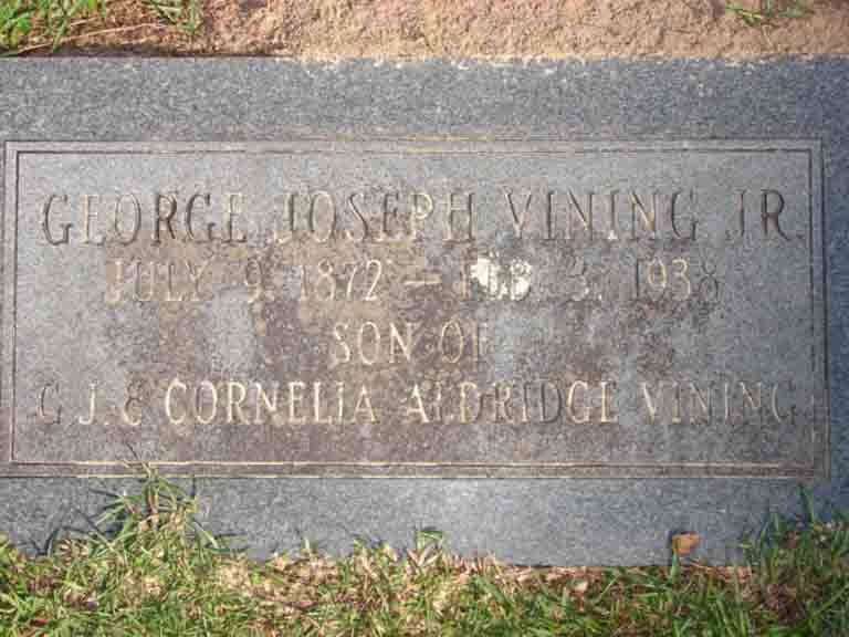 Gravestones for George Joseph Vining Jr. and Margaret Olivia (Rutledge) Vining, in Bellwood Cemetery, Pine Bluff, Jefferson County, Arkansas (from Find A Grave):