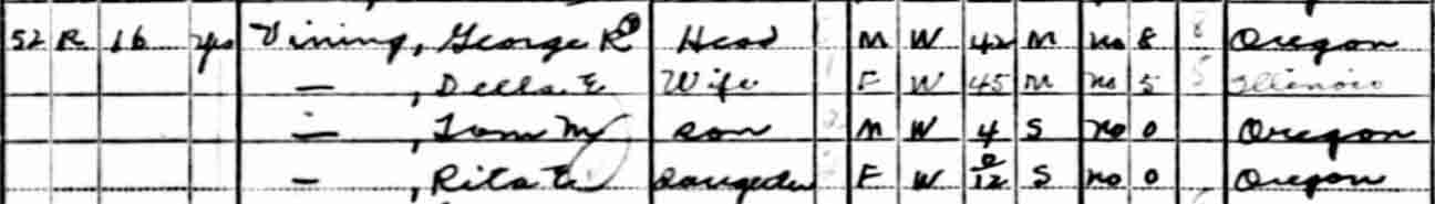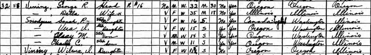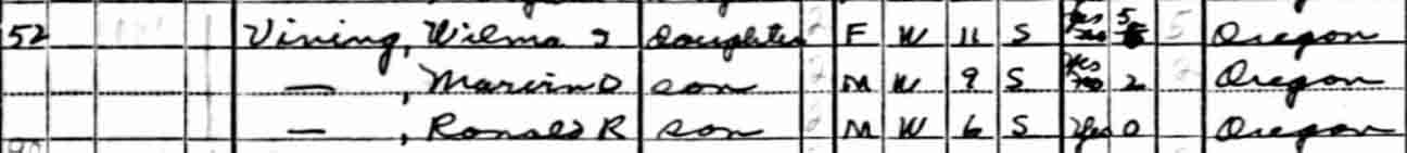 | Vera I. Vining | 15 | [living? in separate household] |