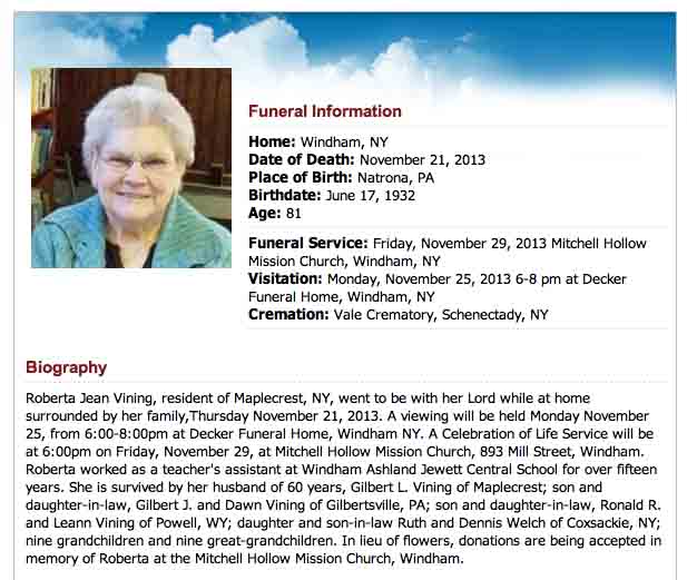 Obituary for Roberta Jean (Daugherty) Vining: