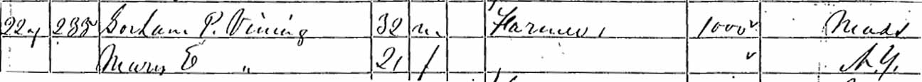 | Mary Eliza Vining | | 3 | 13 | 20 | married [and living in separate household?] | |