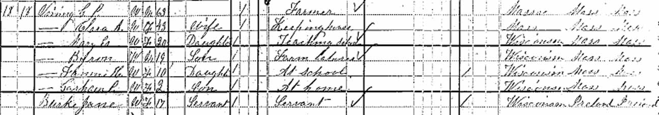 1880 Neenah, Winnebago County, Wisconsin - Also living in this household in 1880 was Jane Burke (17 y., b. Wisconsin).: