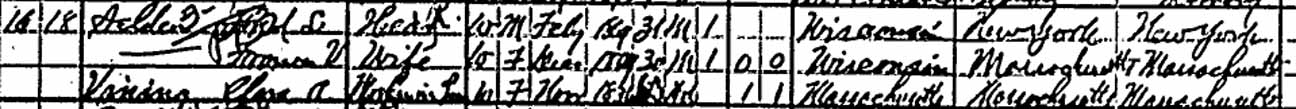 1900 Milwaukee (ward 9), Milwaukee County, Wisconsin - In 1900, Clara A. ([…]) Vining was living in the household of [...] and Frances (Vining) [Alden?] (her daughter and son-in-law). According to this census, Clara was the mother of only one child.: