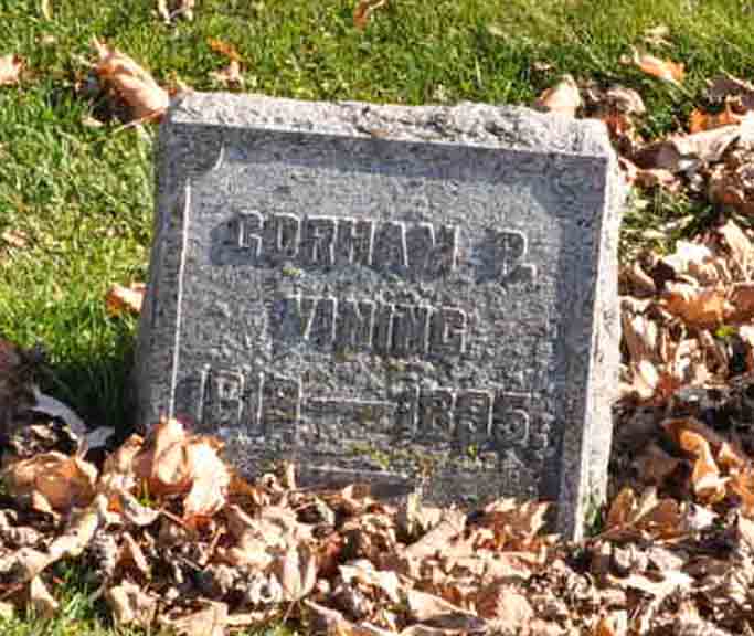 Gravestones for Gorham Parsons Vining, Mary E. (Huxley) Vining, and Clara Alice (Huxley) Vining, in Oak Hill Cemetery, Neenah, Winnebago County, Wisconsin (from Find A Grave):