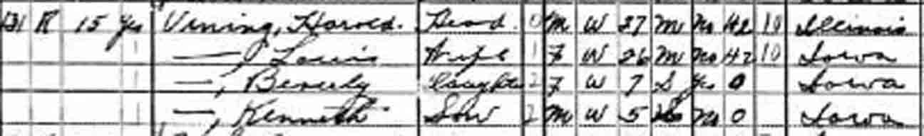 ← Back to Harold Reginald Vining - (1) Lois Hersom; (2) Ida May Krischel