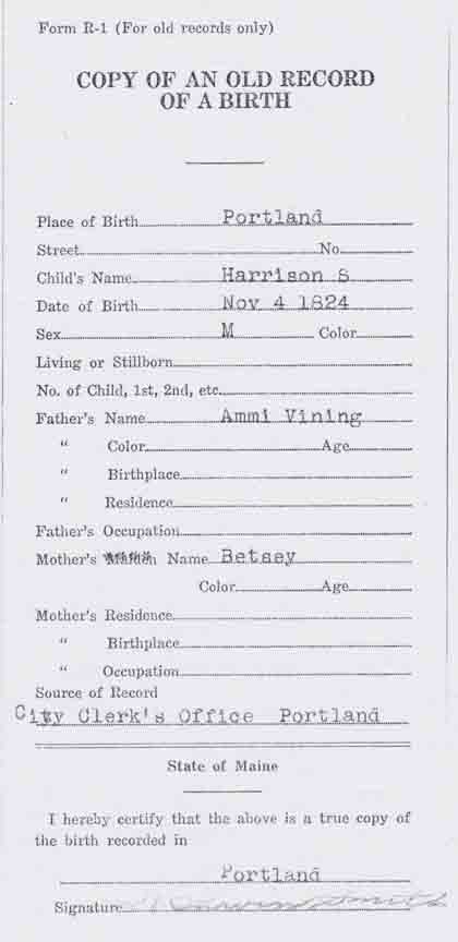 | Harrison S. Vining | 36 | ? | 56 | ? | 75 | dead |