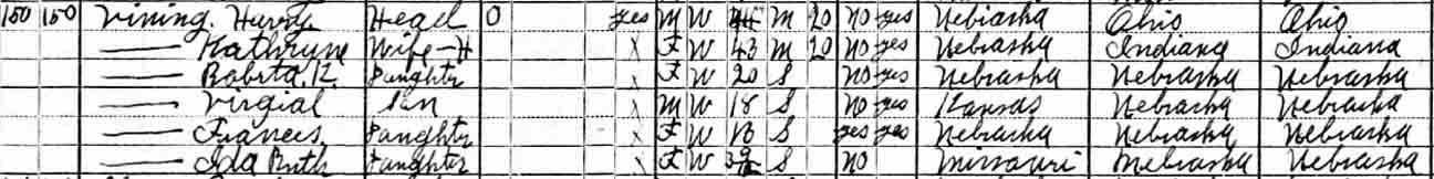 | Roberta K. Vining | 3 m. | 9 | 20 | [living? in separate household] |