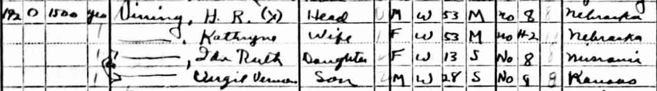| Cecil H. Vining | 2 | 12 | married and living in separate household | |
