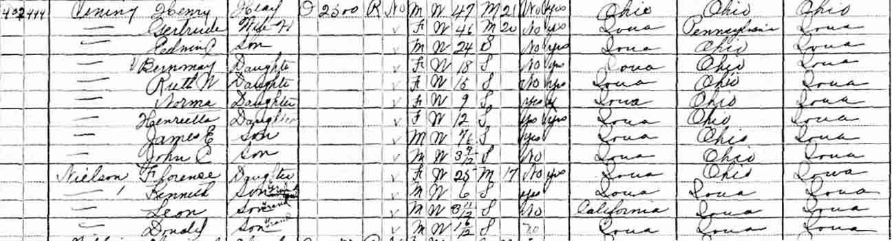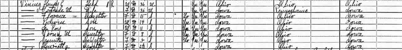| Florence Bernice Vining | 5 | 15 | 25 [see note below] | [living? in separate household] |