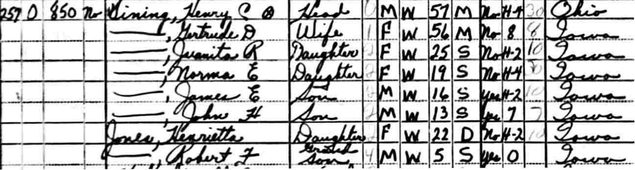 | Verna Mae Vining | 8 | 18 | [living? in separate household] | |