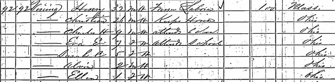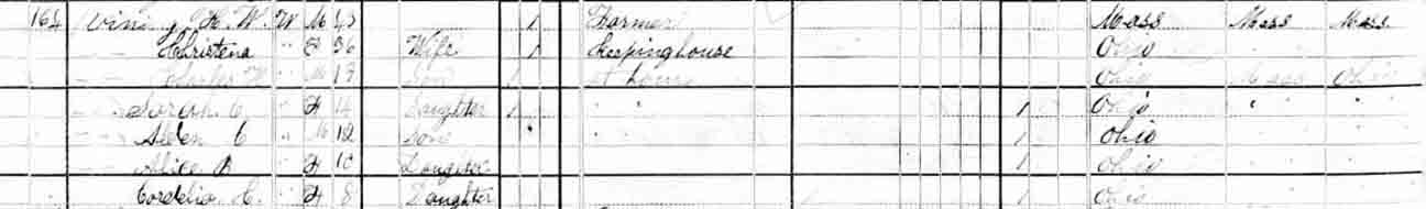 | Charles Herbert Vining | 9 | 19 | ? | married and living in separate household | ||