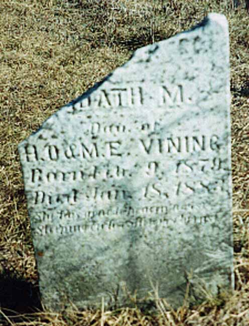 Gravestone for Edath M. Vining, daughter of Horace Oscar Vining and Martha Harrison (Chapman) Vining, in Vining Cemetery, Old Frontenac, Goodhue County, Minnesota (from Find A Grave):