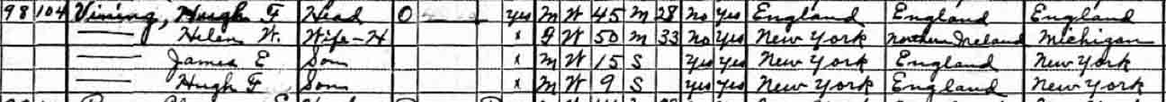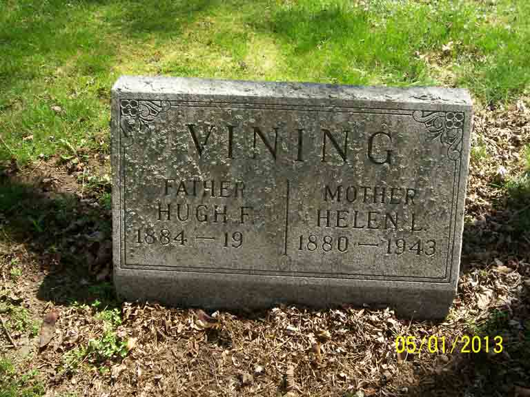 Headstone for Hugh Friedrich Vining and Helen A. Leete (Wilson) Vining, in North Ridge Cemetery, North Ridge, Niagara County, New York (from Find A Grave):