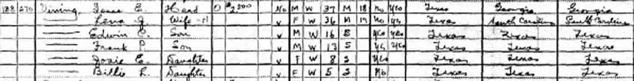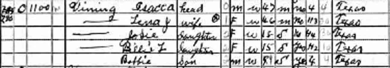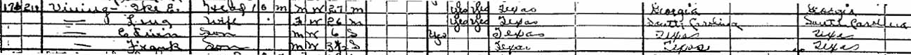| Frank Pittman “Tex” Vining | 3 years, [4?] months | 13 | living in separate household |