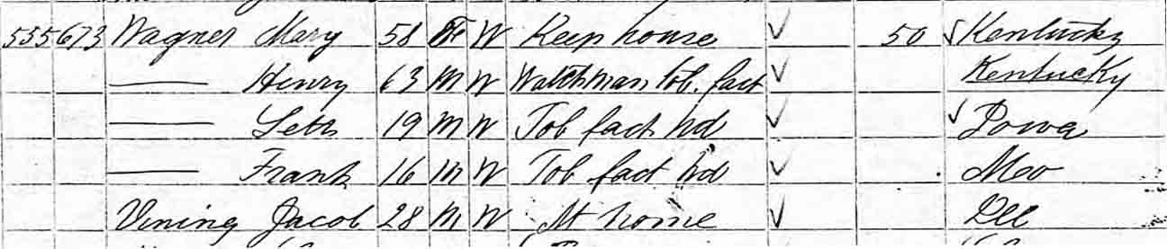 | Fannie Vining | | 8 | ? | 26 [see note below] | [living? in separate household] | |
