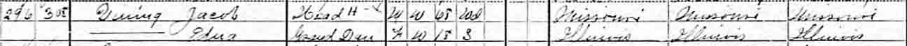 1910 Atlanta (ward 3), Logan County, Illinois - dwelling 296, family 308. Also living in this household in 1910 was granddaughter Edna Vining (18 y., b. Illinois).: