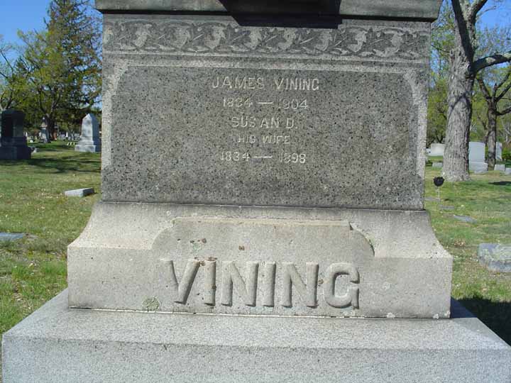 Gravestone of James Vining and Susie D. Clark, in Mount Auburn Cemetery, Auburn, Androscoggin County, Maine: