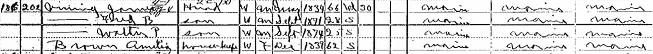 Lewiston (ward 7), Androscoggin County, Maine. Also living in this household in 1900 was Amelia Brown (housekeeper, 62 y., b. Maine).: