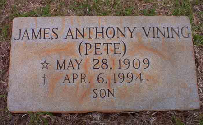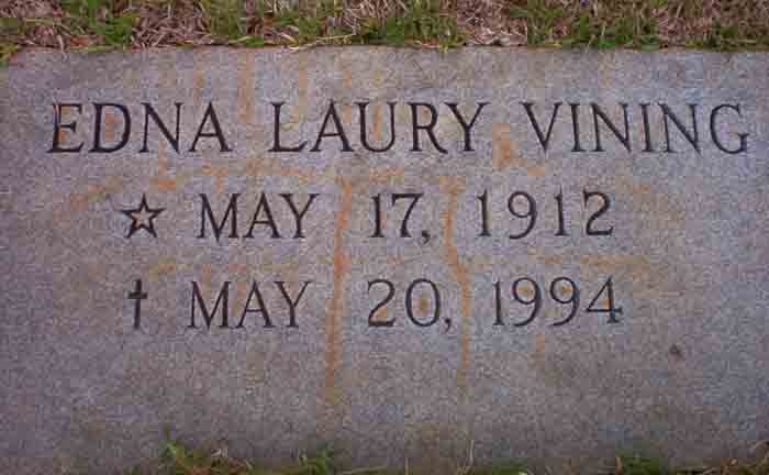 Gravestones for James Anthony Vining and Edna Laury, in Southview Cemetery, Thomaston, Upson County, Georgia (from Find A Grave):