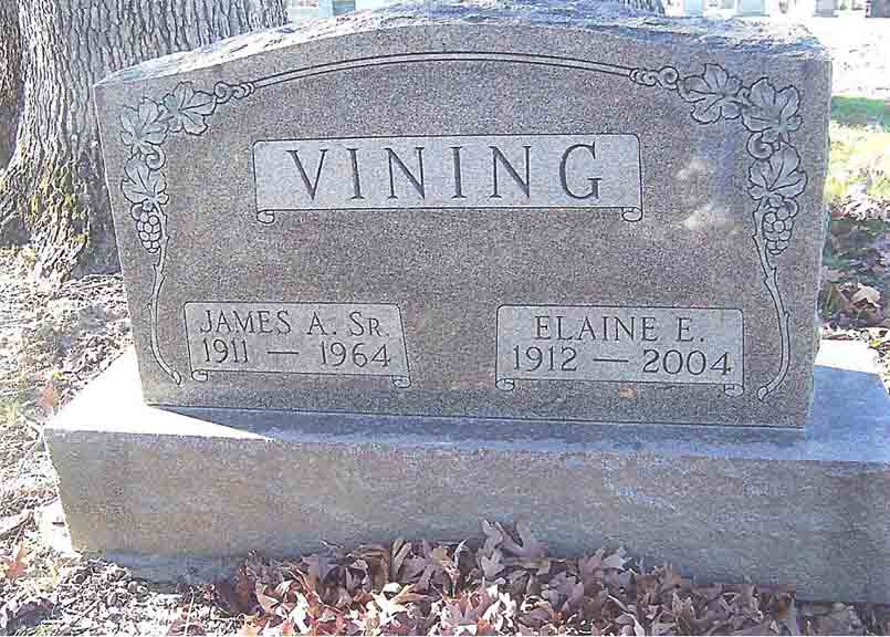 Headstone for James A. Vining and Elaine (Lehner) Vining, in Lindenwood Cemetery, Fort Wayne, Allen County, Indiana (from Find A Grave):
