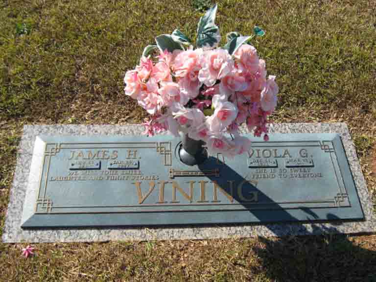 Headstone for James H. Vining and Viola G. ([...]) Vining, in Lawnwood Memorial Park, Covington, Newton County, Georgia (from Find A Grave):