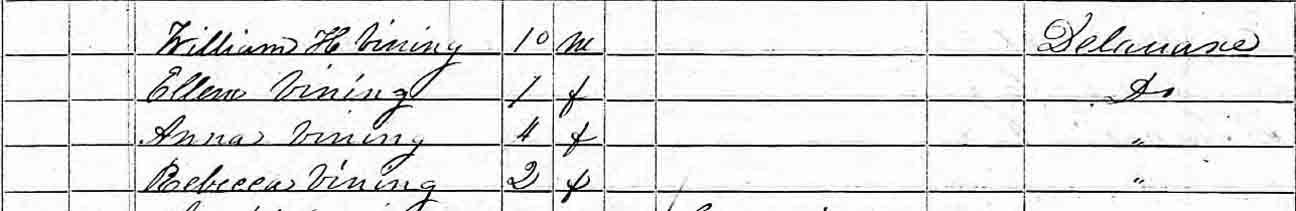 Headstone shared by James L. Vining, in Immanuel Episcopal Churchyard, New Castle, New Castle County, Delaware (from Find A Grave):