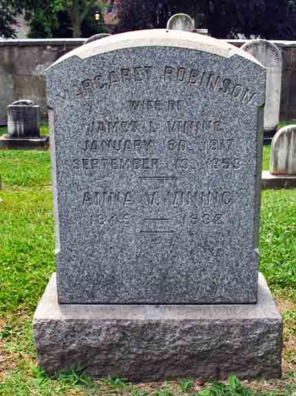 Headstone for Margaret (Robinson) Vining and daughter Anna Vining, in Immanuel Episcopal Churchyard, New Castle, New Castle County, Delaware (from Find A Grave):