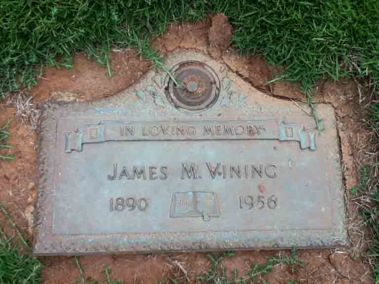 Gravestone for James Myloe Vining, in Montlawn Memorial Park, Raleigh, Wake County, North Carolina (from Find A Grave):