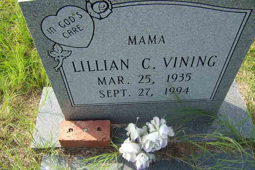 Gravestone for Lillian (Chaney) Vining, in Mount Pleasant Missionary Baptist Church Cemetery, Atkinson County, Georgia (from Find A Grave):