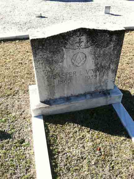 Gravestone for Jasper L. Vining, son of Jasper Vining and Mary (Willis) Vining, in Stapleton Baptist Church Cemetery, Stapleton, Jefferson City, Georgia (from Find A Grave):