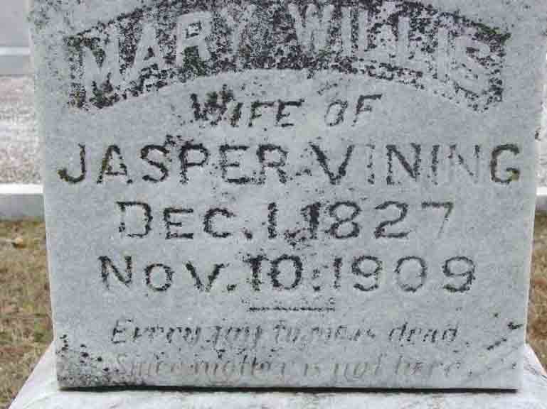 Gravestone for Mary (Willis) Vining, in Stapleton Baptist Church Cemetery, Stapleton, Jefferson County, Georgia (from Find A Grave):