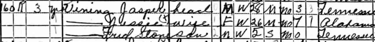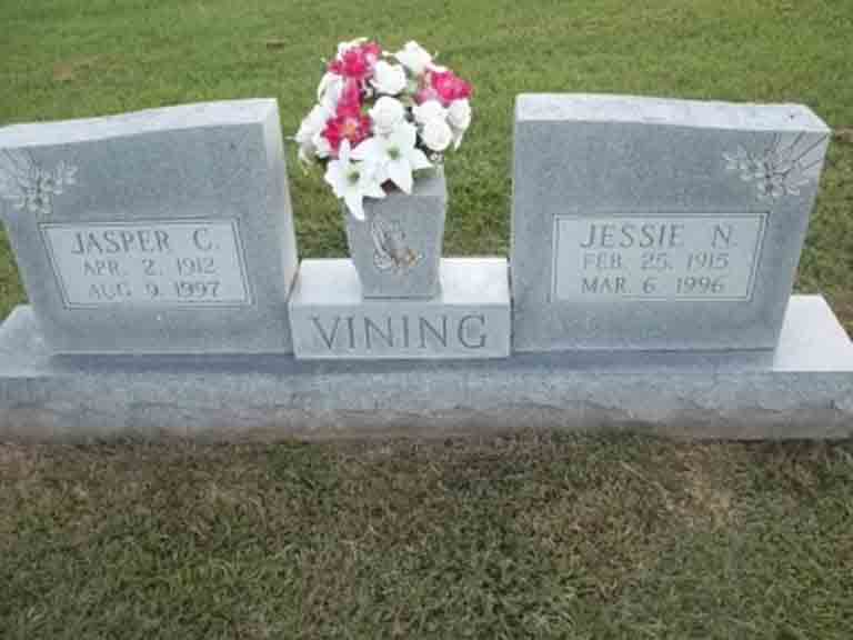 Headstone for Jasper C. Vining and Jessie N. (Burnett) Vining, in Maplewood Cemetery, Pulaski, Giles County, Tennessee (from Find A Grave):
