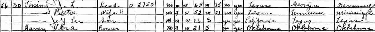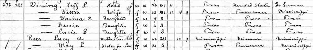 | Bessie Vining | 6 | 16 | [living? in separate household] | ||