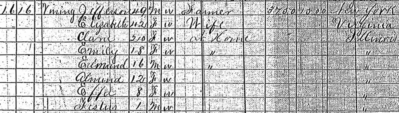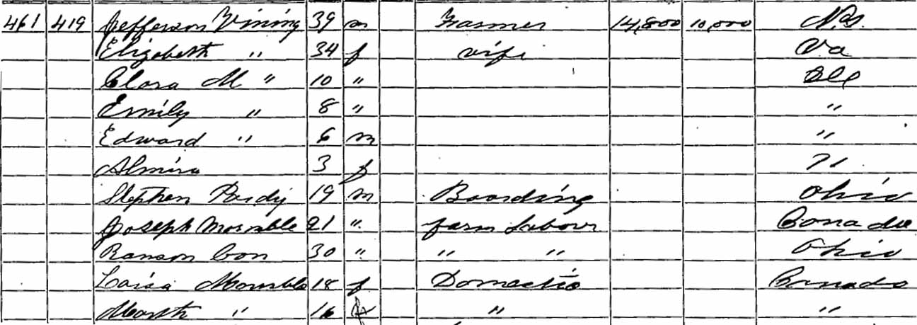 | Edmund Pendleton Vining | 6 | 16 | married and living in separate household |