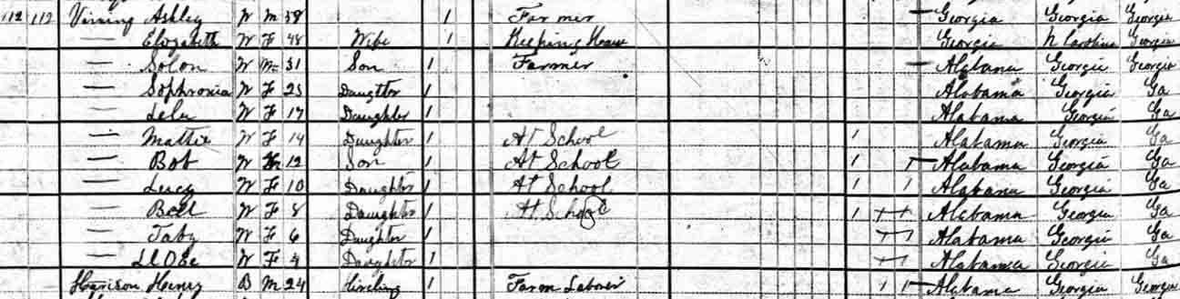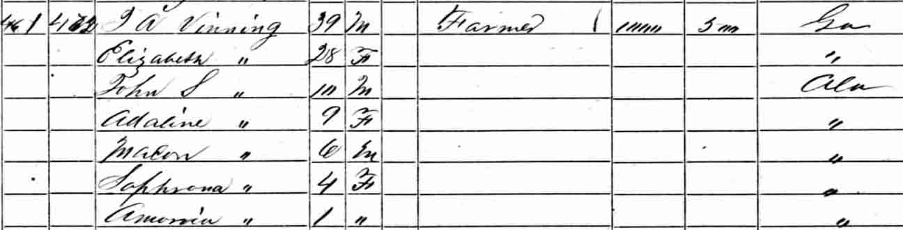 | Adaline Vining | 9 | ? | married and living in separate household | |||
