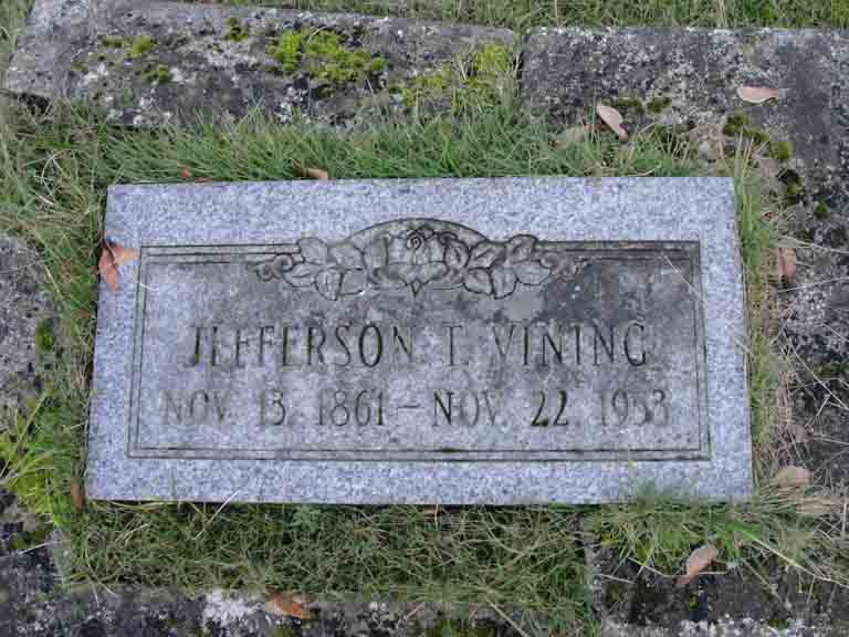 Gravestone for Jefferson T. Vining, in Masonic Cemetery, McMinnville, Yamhill County, Oregon (from Find A Grave):