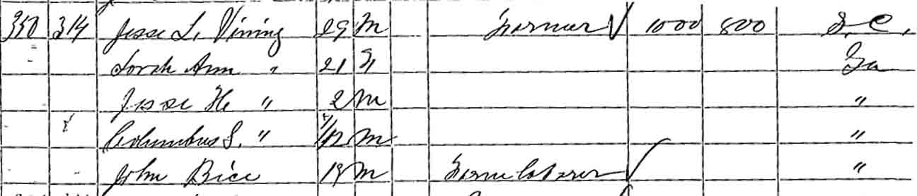 | Jesse Henry Vining | 2 | 12 | not living in this household | ? | not living in this household | |