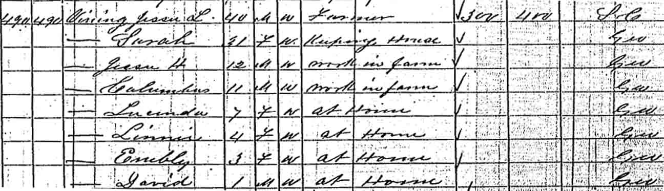 | Malinda E. "Linnie" Vining | 4 | married and living in separate household | ||||