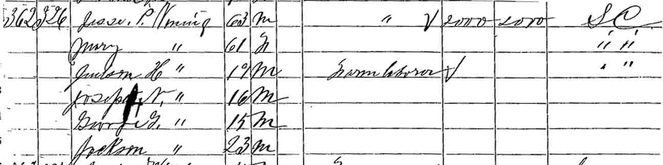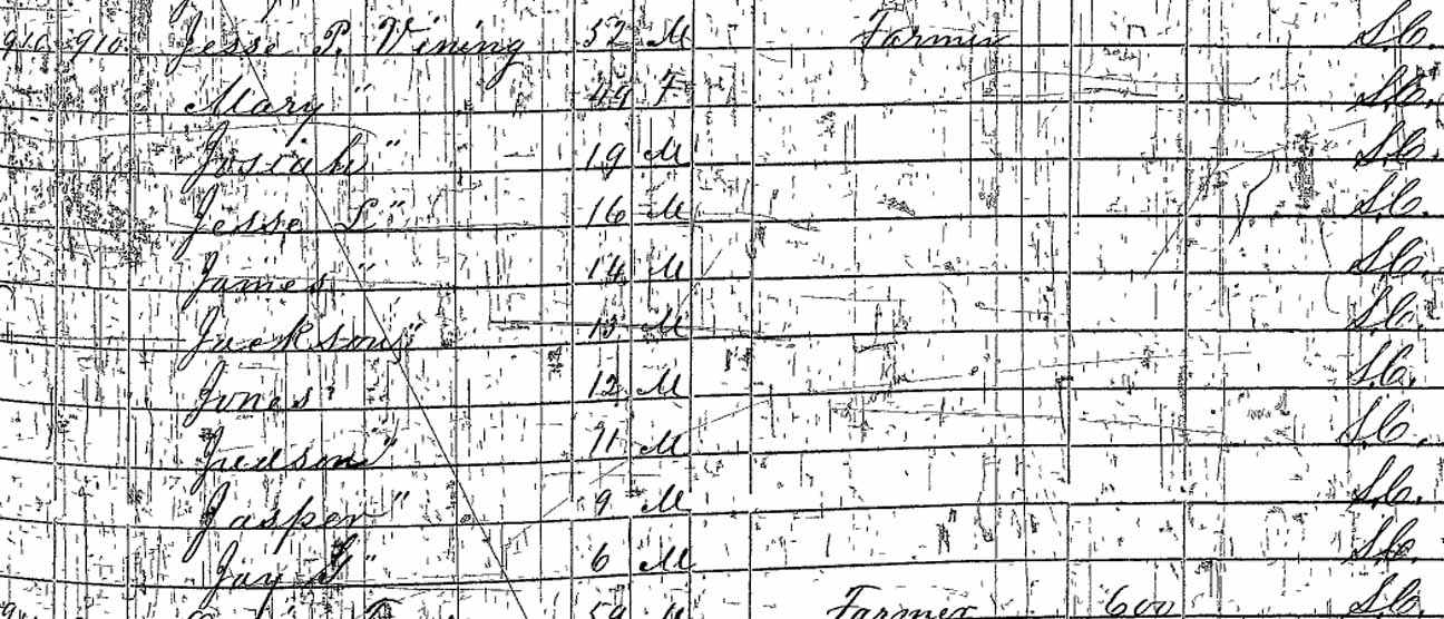 | Jesse Lawrence Vining | ? | 16 | not living in this household | not living in this household | ||