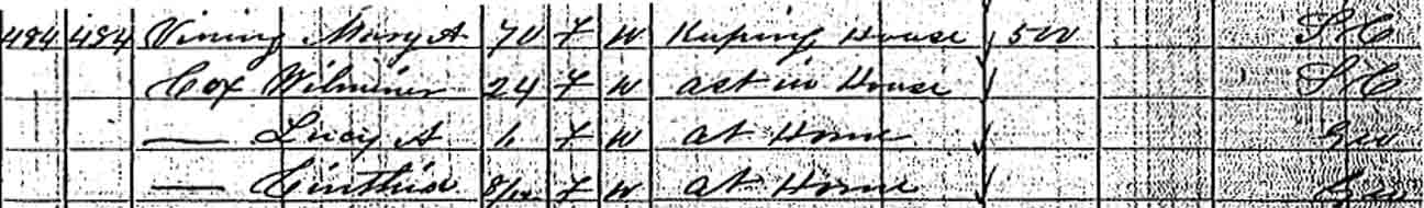 | James P. Vining | ? | 14 | not living in this household | dead | ||