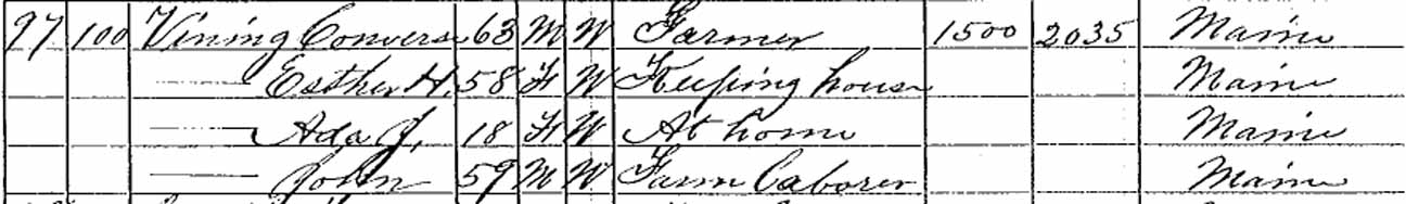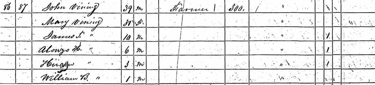 | Alonzo Haines Vining | 6 | 17 | married and living in separate household | ||||