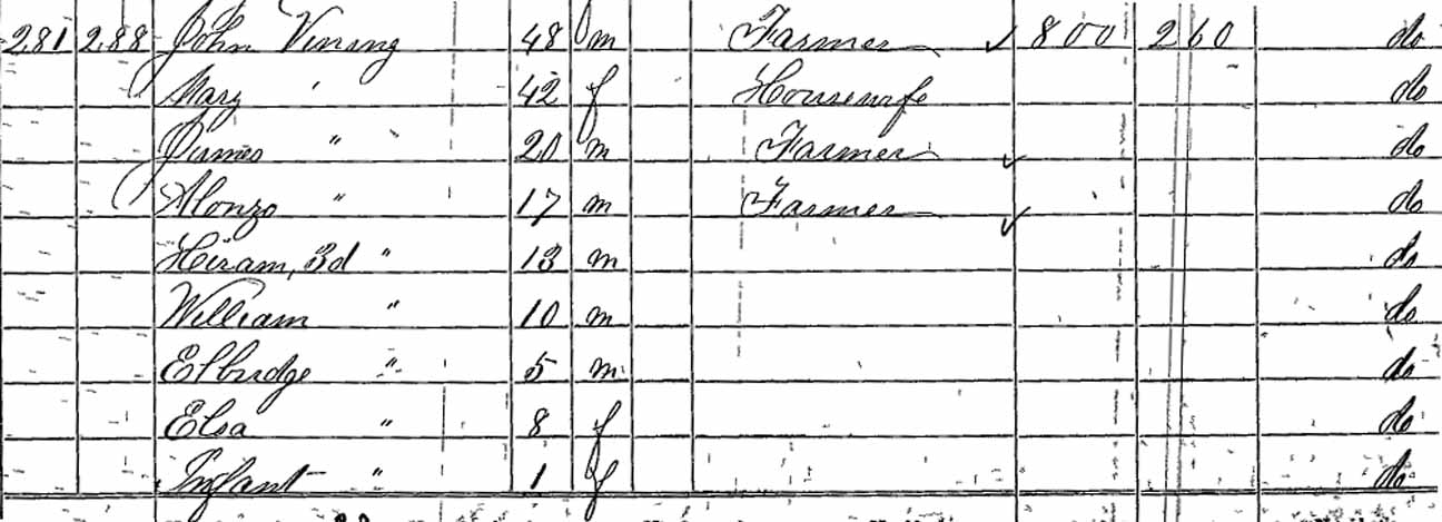 | Hiram Vining | 3 | 13 | living in separate household [see note below] | ||||