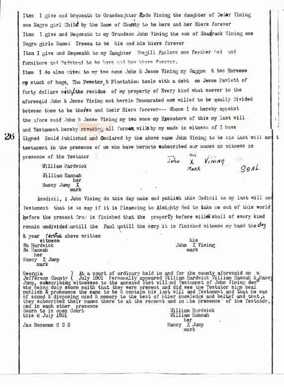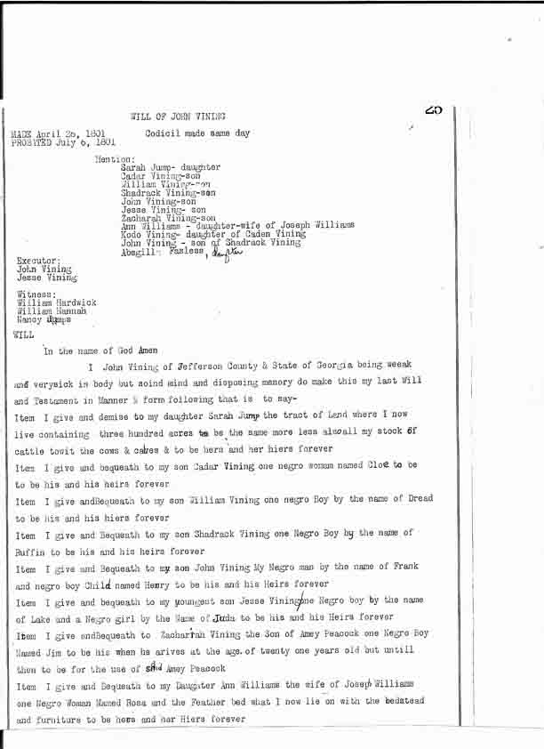 John's son Thomas was not mentioned in his father's will, but Zachariah, Thomas's son, was mentioned. Also, Jesse was named as John's “youngest son”. This suggests that John's son Thomas predeceased his father's making of his will, which was 26 April 1801. Research is needed regarding this possibility.