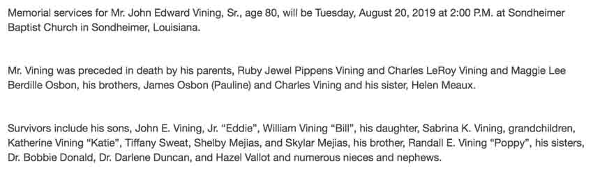 Obituary for John Edward Vining: