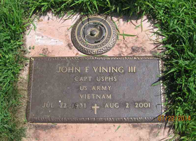 Gravestone for John Franklin Vining III, in Blue Hill Cemetery, Braintree, Norfolk County, Massachusetts (Source: Find A Grave):