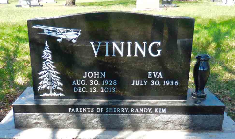Headstone for John Keith Vining and Eva (Hromick) Vining, in Watson Cemetery, Leonard, Cass County, North Dakota (from Find A Grave):